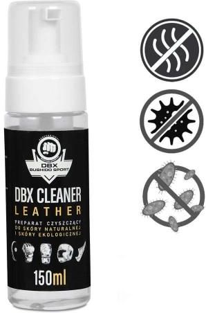 DBX CLEANER LEATHERŚrodek do czyszczenia powierzchni skórzanych Środek czyszczący DBX Cleaner Leather to produkt przeznaczony do dbania o higienę sprzętu sportowego wykonanego ze skóry naturalnej oraz skóry ekologicznej – zwłaszcza rękawic bokserskich, obuwia, ochraniaczy, kasków.Preparat zawiera specjalną kombinację komponentów czyszczących, które idealnie sprawdzają się do usuwania zabrudzeń i plam. Zastosowane w nim składniki są całkowicie bezpieczne, dlatego też płyn nie uszkadza powłoki oraz nie ściera farby.Bardzo często powierzchnie skórzane czyszczone są dostępnymi w sklepach kosmetycznych czy supermarketach preparatami zawierającymi w swoim składzie: alkohol, woski, silikony, które degradują powierzchnię, a długotrwale stosowane powodują pękanie i ścieranie.Preparat usuwa również nieprzyjemne zapachy typu: dym papierosowy, pot ludzki itp. Zalety preparatu czyszczącego DBX CLEANER LEATHER:✅ Usuwa zabrudzenia powstałe podczas użytkowania sprzętu (pot, krew, złuszczony naskórek)✅ Usuwa nieprzyjemne zapachy✅ Nie powoduje alergiJak to działa?Sprzęt sportowy wykonany w skórze naturalnej i ekologicznej podczas użytkowania ulega różnego rodzaju zabrudzeniom, a także jest narażony na szkodliwe działanie czynników zewnętrznych m.in. potu ludzkiego. Wszystkie tego rodzaju czynniki powodują, iż materiał z którego jest wykonany może ulec blaknięciu, ścieraniu i pękaniu. DBX CLEANER LEATHER skutecznie usuwa wszelkiego rodzaju plamy i zabrudzenia z powierzchni skóry, niweluje nieprzyjemne zapachy (np. dym papierosowy, ludzki pot), nie uszkadza jej powierzchni i nie powoduje powstawania przebarwień. Dzięki zastosowaniu aplikatora piany ogranicza się do niezbędnego minimum użycie wody, której długotrwałe stosowanie są niebezpieczne dla kondycji skóry/skóry ekologicznej. Wygoda użytkowaniaStosowanie preparatu ułatwione jest poprzez zastosowanie aplikatora piany. Świeże plamy należy usuwać natychmiast za pomocą szmatki dobrze wchłaniającej wilgoć.Jak korzystać z DBX Cleaner Leather?✅ Wytworzyć pianę i następnie nanieść ją na gąbkę (nie nanosić preparatu bezpośrednio na powierzchnię skóry/ skóry ekologicznej.✅ Czyścić delikatnie okrężnymi ruchami.✅ Nie trzeć mocno i długo - grozi to odbarwieniem koloru skóry.✅ Pozostałości usunąć miękką szmatką. W razie konieczności czynność powtórzyć.✅ Pozostawić do wyschnięcia.UWAGA! Preparat służy do czyszczenia skór i skór ekologicznych a nie tkanin, dlatego w przypadku sprzętu sportowego aplikuj tylko na obszary pokryte tymi właśnie materiałami wykończeniowymi. Nie należy stosować preparatu do skór anilinowych, skór otwartych, nubuk i velur.Duża wydajność DBX CLEANER LEATHER dzięki zastosowaniu aplikatora pianotwórczego jest bardzo wydajny. W trakcie pojedynczego czyszczenia np. rękawic aplikuje się płyn tylko raz. Butelka 150ml wystarcza na ok. 250 aplikacji. Parametry techniczne odświeżacza: · Pojemność butelki 150 ml Przeznaczony do czyszczenia skór naturalnych i skór ekologicznych w sprzęcie sportowym Aplikator piany ułatwiający dozowanie preparatu Wyprodukowany w Polsce