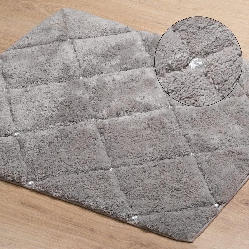 Dywanik łazienkowy CHIC-2 60x90 Eurofirany srebrny Eurofirany Dywanik łazienkowy to niezbędne wyposażenie każdej łazienki. W łazience najczęściej na podłodze mamy płytki, stąd dywanik stanowi miły podkład pod stopy, izolując je od chłodu podłogi. Po każdej kąpieli, czy to w wannie, czy pod prysznicem, dywanik wchłonie wodę z mokrych nóg, zapobiegnie też poślizgowi na mokrej powierzchni. Bawełniany dywanik łazienkowy CHIC-2 jest miękki i został ozdobiony kryształkami. Dywanik został wykonany z wysokiej jakości naturalnych materiałów, jest chłonny i delikatny dla ciała. Dzięki dopracowanemu wzornictwu i estetyce, dywanik łazienkowy stanowi też element dekoracyjny wystroju łazienki. Producent: Eurofirany Rozmiar: 60x90 cm Kolor: srebrny Gramatura: 1800 GSM Skład: 100% bawełna Skład: 100% bawełna Kolor: srebrny Gramatura: 1800 g/m2 Rozmiar: 60x90