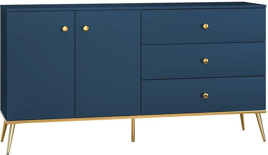 Pojemna komoda BLU 2D3S z cichym domykiem Komoda BLU 2D3S to elegancki mebel, który wyróżnia się swoją atrakcyjną kolorystyką. Łączy w sobie głęboki, stonowany granat z błyszczącymi złotymi dodatkami, tworząc elegancki i odważny design. Produkowana w Polsce, komoda wykonana jest z płyty laminowanej …