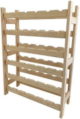 Drewniany regał na wino wykonany jest z naturalnego drewna sosnowego. Drewno nie jest niczym impregnowane, posiada zdrowe sęki, które nadają meblom naturalnego i ciepłego wyglądu. Powierzchnia regału jest gładka. Wyposażony jest w półki przystosowane do przechowywania butelek. Na regale mieści się 36 butelek wina lub innych. Regał skonstruowany jest tak, aby butelka z winem spoczywała delikatnie pochylona w stronę korka, dzięki temu w butelkach nie będą zachodziły procesy chemiczne. Regał jest solidnie wykonany i stabilny, składa się z: 6 leżni przednich; 6 leżni tylnych. Wymiary: Szerokość: 62,6 cm; Wysokość: 86 cm; Głębokość: 25 cm; Grubość deski: 1,4x4,5 cm; Regał na wino może być idealnym rozwiązaniem na prezent dla bliskiej osoby. Doskonale wkomponuje się w wystrój każdej kuchni, piwnicy lub spiżarni. Można go impregnować, lakierować oraz malować we własnym zakresie. Regał wysyłamy w elementach do samodzielnego złożenia. Montaż jest bardzo prosty. W zestawie znajduje się instrukcja wraz z niezbędnymi elementami. Przesyłki wysyłamy kurierem DPD.