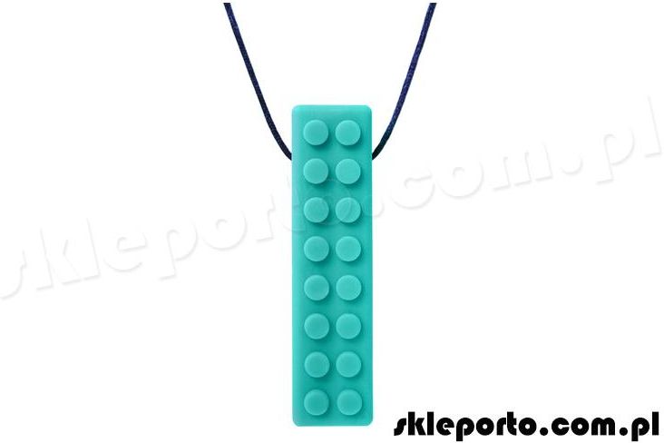 Gryzak w kształcie klocka lego w formie naszyjnika. RK Brick Stick made in USA - gryzak w kształcie klocka Lego w formie naszyjnika. Bardzo wygodna i bezpieczna alternatywa w stosunku do gryzienia kredek, pisaków czy własnych palców. Szczególnie polecane dla dzieci tzw "przeżuwaczy", którym pozwala odreagować różnego rodzaju stresy dając możliwość skupienia np na pracy domowej lub innych zajęciach wymagających zwiększonej uwagi. Wykonany z wysokiej jakości elastomeru klasy medycznej. Dostępny w trzech różnych typach twardości: Bardzo Miękki różowy, czerwony, fuksja, granatowy XT Miękki zielony, turkusowy, czarny XXT twardy niebieski, fioletowy, ciemno zielony, pomarańczowy Każda zawieszka jest sprzedawana w komplecie z rzemykiem. Odcienie kolorów mogą się nieznacznie różnić. Ze względów bezpieczeństwa dopuszcza się stosowanie tego typu gryzaków u dzieci w wieku 5 + Gryzak wyprodukowany w USA w zgodzie ze standardami FDA. Produkt nie zawiera ołowiu, ftalanów, PCV, BPA czy lateksu.