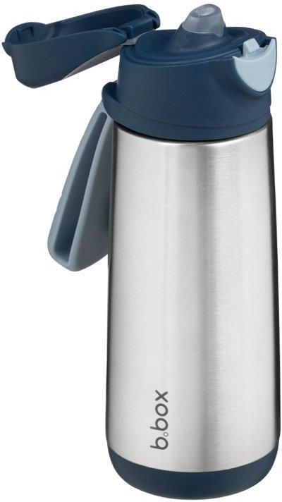 Butelka termiczna dla dzieci 500 ml bidon z ustnikiem sportowym 12m+ Midnight b.box Dzięki termicznej butelce z dzióbkiem zadbasz o codzienne, odpowiednie nawodnienie organizmu, a przy tym nie będziesz martwić się o utrzymanie temperatury napoju. Ciepłe lub zimne płyny pozostaną we właściwej temperaturze dzięki podwójnym izolowanym ściankom ze stali nierdzewnej. Gaszenie pragnienia będzie odtąd czystą przyjemnością, którą zapewnia miękki silikonowy i higienicznie czysty ustnik schowany pod szczelną klapką. Silikonowy uchwyt pozwala dzieciom nosić butelkę z wodą i łatwo ją wyciągać z toreb i plecaków. Designerski i praktyczny bidon przyda się zarówno podczas uprawiania sportów, jak i w szkole czy pracy. Zalety termicznej butelki z dzióbkiem podwójne izolowane ścianki ze stali nierdzewnej utrzymujące chłód do 15 godzin i ciepło do 8 godzin szczelna pokrywka z przyciskiem, która zapobiega przypadkowemu rozlaniu i chroni ustnik przed zabrudzeniem (szczelna przy zamkniętej klapce) silikonowy uchwyt pozwala dzieciom łatwo nosić butelkę z wodą i wyciągać ją z toreb szkolnych i sportowych szeroki wlew umożliwia łatwe napełnianie (i uzupełnianie) wodą i kostkami lodu pojemność w sam raz dla aktywnych (500 ml) silikonowy ustnik zapewniający swobodny przepływ napoju i brak ryzyka skaleczenia się, ustnik posiada zawór zapobiegający nadmiernemu rozlewaniu Parametry techniczne Pojemność: 500 ml Nie zawiera BPA, ftalanów i PVC Materiał butelki: stal nierdzewna podwójnie izolowana Materiał ustnika i uchwytu: silikon Materiał klapki: polipropylen Wiek dziecka: 12 m+ Ostrzeżenie (!) Nie napełniać gorącymi (temp. pow. 45°C) i gazowanymi napojami. Istnieje ryzyko poparzenia. Wskazówki dotyczące pielęgnacji Można myć w górnym koszu zmywarki. Nie używać w mikrofalówce. Nie używać z kwaśnymi płynami — mogą spowodować korozję stali. Nie napełniać gorącymi (temp. pow. 45°C) napojami. Aby skutecznie wyczyścić silikonowy ustnik, zdjąć go z pokrywki i umyć ciepłą wodą z mydłem. Zalecane użycie zestawu szczotek do czyszczenia, aby dokładnie wyczyścić pokrywę i ustnik. Przed ponownym zamontowaniem pozostawić wszystkie części do całkowitego wyschnięcia. Zaleca się rozmontowanie butelki z napojem, aby upewnić się, że silikonowy ustnik jest prawidłowo włożony. Odkręcić pokrywkę i pociągnąć za wypustkę na spodzie, aby uwolnić silikonową wylewkę z pokrywki. Ponownie zamontować — mocno wcisnąć silikonowy ustnik w pokrywkę, aż "wskoczy" na swoje miejsce.
