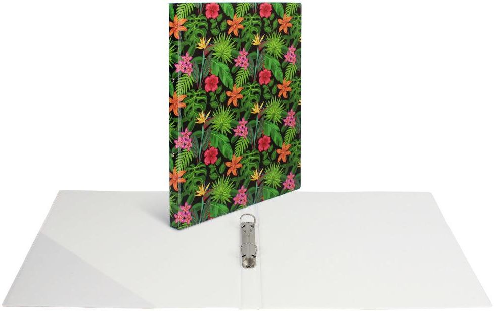 Segregator A4 2R /2cm z folii PVC z nadrukiem Segregator wykonany z folii PVC z ozdobnym kolorowym nadrukiem W środku po lewej stronie okładki przezroczysta trójkątna kieszeń Idealny do przechowywania różnych dokumentów lub rysunków Grzbiet o grubości 2cm i okładki usztywnione tekturą Idealny do przechowywania dokumentów Dwuringowy pierścień typu D Wzór: flowers