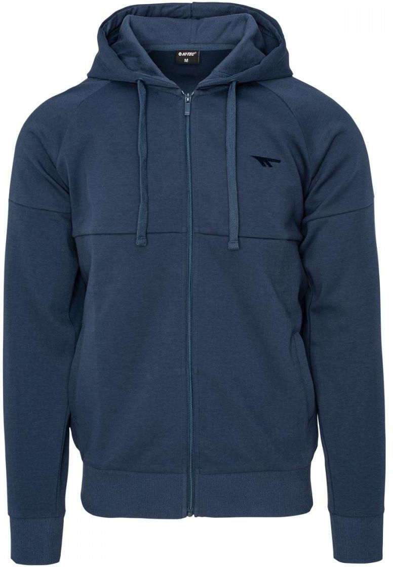 Bluza Hi-Tec Hadar M Bluza HADAR marki Hi-Tec będzie atrakcyjnym dodatkiem Twoich codziennych stylizacji. Męska bluza HADAR posiada luźny, sportowy krój. Obszerny, regulowany kaptur osłoni przed powiewami wiatru. Bluza HADAR posiada dwie kieszenie boczne. Bluza została wykończona ściągaczem w talii, dzięki temu dobrze dopasowuje się do sylwetki. Elastyczne wykończenie mankietów utrzymuje rękawy na swoim miejscu. Granatowy kolor sprawdzi się w wielu stylizacjach. Najważniejsze cechy: Klasyczna kolorystyka Zamek na całej długości Regulowany kaptur Dwie kieszenie boczne Elastyczne mankiety Materiał 76% bawełna, 24% poliester