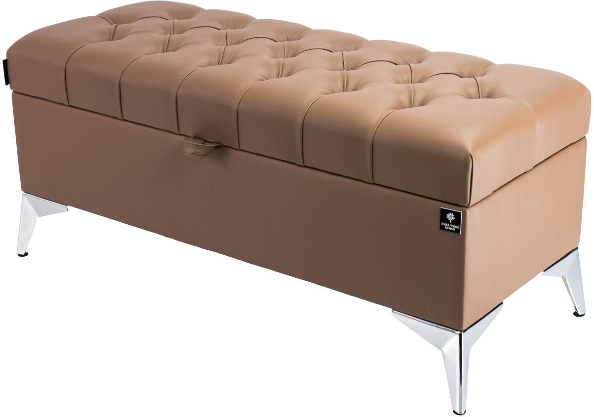 Ławka ze Schowkiem Skrzynia Pikowana kolor Brązowy tkanina Ekoskóra Florencja 2524, Nóżki Chromowe, Model Q-2Współczesne wnętrza wymagają przemyślanych rozwiązań, które łączą estetykę, komfort i praktyczność. Ławka ze schowkiem Q-2 to propozycja dla osób ceniących design na najwyższym poziomie, a …