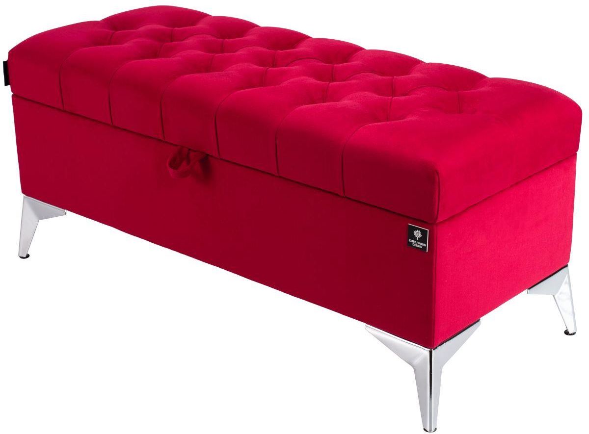 Ławka ze Schowkiem Skrzynia Pikowana kolor Czerwony tkanina Casablanca 2309, Nóżki Chromowe, Model Q-2Współczesne wnętrza wymagają przemyślanych rozwiązań, które łączą estetykę, komfort i praktyczność. Ławka ze schowkiem Q-2 to propozycja dla osób ceniących design na najwyższym poziomie, a …