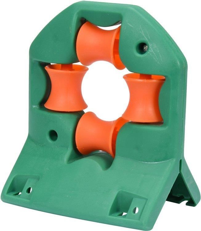 Prowadnica marki FLO zapobiega plątaniu się węża i jego przecieraniu. 4 rolki umożliwiają przesuwanie węża w dowolnym kierunku, dwa warianty otworów montażowych pozwalają na zamontowanie prowadnicy zarówno na narożnik jak i na płaskiej powierzchni.