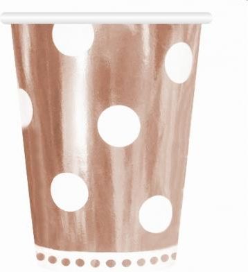 KUBECZKI PAPIEROWE 6 SZTUK B&C GROSZKI RÓŻOWO-ZŁOTE GODANPapierowe kubki są ekologicznym zamiennikiem jednorazowych, plastikowych kubków. Prosty, graficzny wzór niezawodnie zdobi wnętrze, a zrazem uzupełnia dekorację. Różowozłota, metaliczna powierzchnia świetnie komponuje się ze zdobieniem w postaci białych kropek. Ilość sztuk w opakowaniu: 6 kubkówMateriał: PapierKolor: Różowe złotoWysokość: ok. 9 cmŚrednica: 7.5 cmPojemność: 266 ml Cena za opakowanieEAN:5902973128208