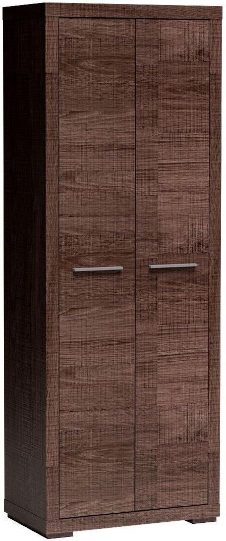 Prosta szafa dwudrzwiowa do przechowywania ubrań. Posiada cztery półki w środku, co pozwala na wykorzystanie przestrzeni szafy w 100%. Organizacja z tym meblem to sama przyjemność. Pasuje do salonu, sypialni czy biura lub gabinetu. Można stworzyć z nią wiele aranżacji, wprowadzając do pomieszczenia ciepła oraz miłego klimatu. Metalowe uchwyty uwydatniają potencjał mebla. Dostępna w dwóch wybarwieniach.