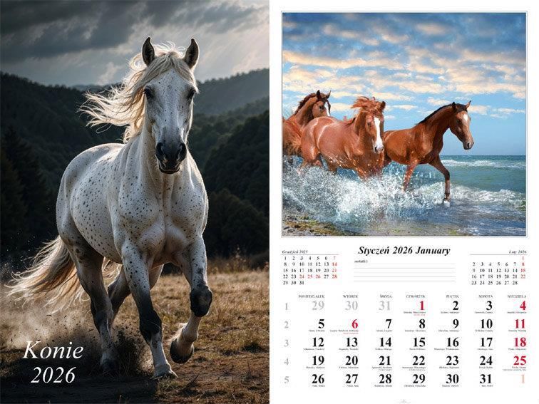 Kalendarz 2026 ścienny 13-k Konie Tarnów