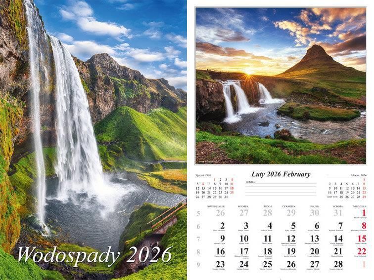 Kalendarz 2026 ścienny 13-k Wodospady Tarnów