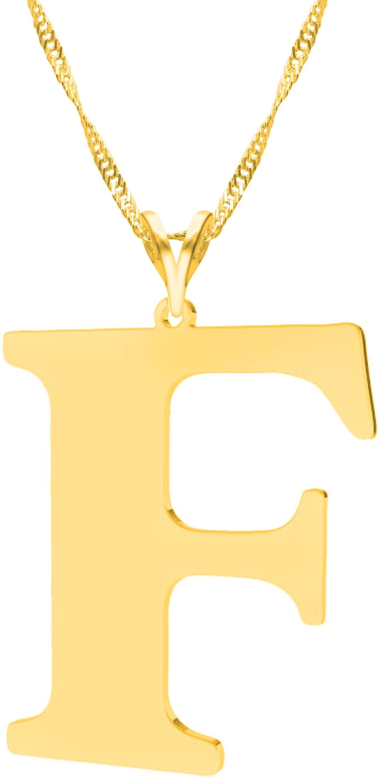 Naszyjnik złoty Wielka Litera 💙 Surowiec: Srebro 💙 Próba: 925 💙 Powłoka:4-warstwy złota próby 999 (24 karaty) 💙 Kamień: Brak 💙 Typ: Naszyjnik 💙 Długość: 52cm + 3cm (przedłużka w kształcie serc) 💙 Splot łańcuszka: Singapur 💙 Wysokość zawieszki: 39 mm 💙 Motyw: Litera 💎 Biżuteria pozłacana …