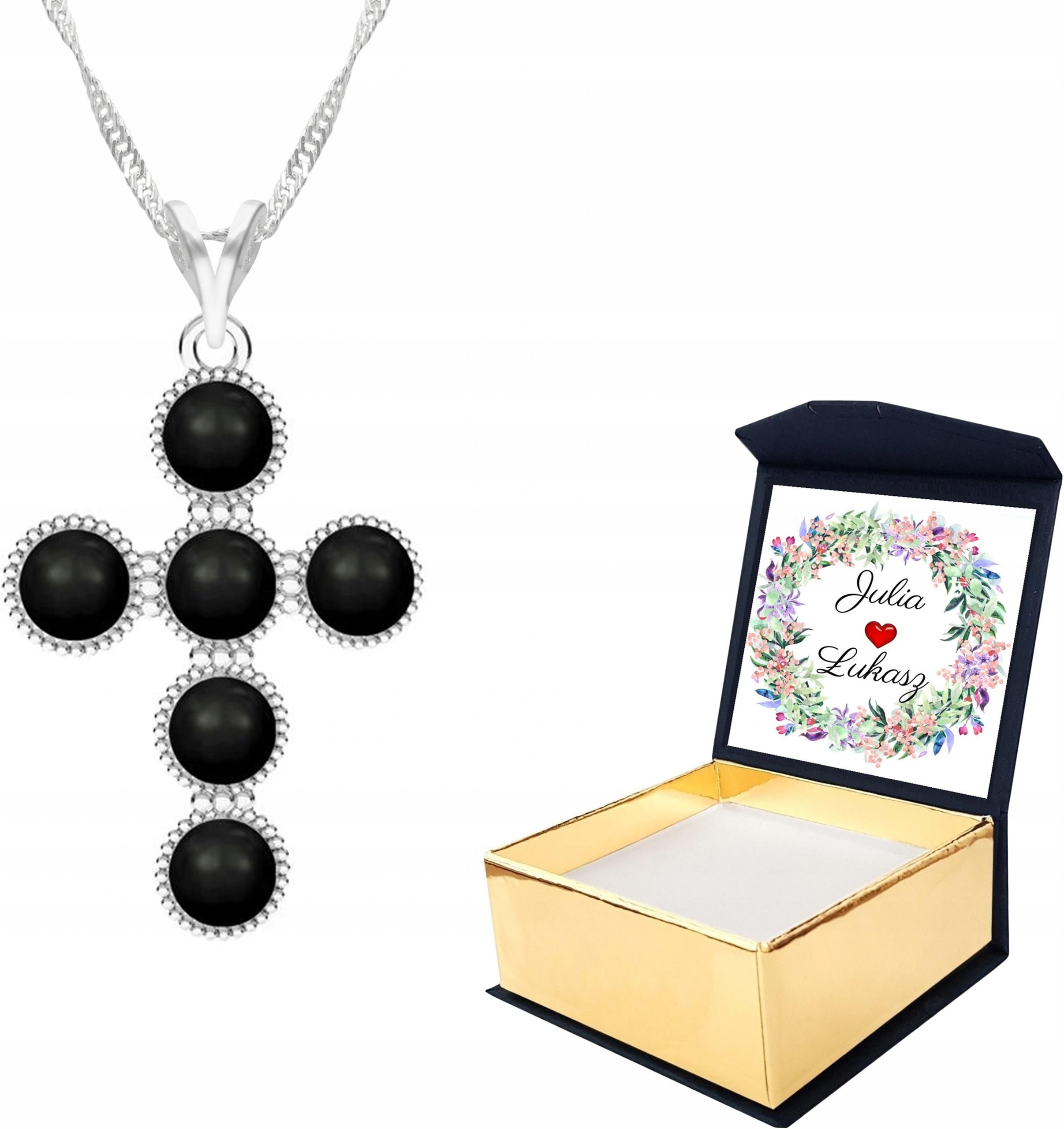 💎Naszyjnik srebrny Krzyż Czarna Perła + pudełeczko z własnym nadrukiem 💙 Surowiec: Srebro 💙 Próba: 925 💙 Kamień: Perła Syntetyczna 💙 Typ: Naszyjnik 💙 Długość: 42cm + 3cm (przedłużka w kształcie serc) 💙 Splot łańcuszka: Singapur 💙 Wysokość zawieszki: 30 mm 💙 Motyw: Krzyżyk 💎 Srebro nie zawiera domieszek niklu co sprawia, że wyrób jest całkowicie antyalergiczny (nie powoduje reakcji alergicznych). 💎 Ręcznie polerowany. 💎 DO ZAMÓWIENIA OTRZYMASZ GRATIS! 💙 Piękne biało-złote pudełeczko z pozłacanym logo oraz WŁASNYM NADRUKIEM. 💙 Certyfikat jakości wystawiony i podpisany przez naszych jubilerów. 💙 Opakowanie fasonowe oraz złote wypełnienie paczki wykonane z ekologicznych produktów. 💙 Poradnik jak dbać o biżuterię. 💎 PUDEŁECZKO Z WŁASNYM NADRUKIEM GRATIS! Spraw aby twój prezent pozostał wyjątkowy i niepowtarzalny! Prosimy w "wiadomości do sprzedającego" o podanie: 💙 WARIANT 1: Wybierz numer obrazu, czcionkę oraz podaj treść tekstu 💙 WARIANT 2: Wybierz numer wzoru oraz podaj treść tekstu do zmiany 💙 WARIANT 3: Wyślij Nam własny projekt lub własne zdjęcie wraz z tekstem. 1.OBRAZY 💎 Dlaczego marka LAREZO? 💙 Polska marka - autorskie projekty oraz własne pracownie jubilerskie oraz galwaniczne zlokalizowane w Małopolsce. 💙 Piękne pudełeczka - nasze pudełeczka na biżuterię produkowane są w 100% w Polsce. Każdy element jest ręcznie składany i klejony z dbałością o każdy szczegół ! 💙 Pokrywanie biżuterii złotem - biżuteria pozłacana pokrywana jest czterema warstwami 24-karatowego złota przez naszych jubilerów w pracowniach galwanicznych. Każda warstwa jest dodatkowo hartowana. Grubość powłoki to ponad 1 mikron ! 💙 Najwyższej jakości srebro antyalergiczne - nie zawiera żadnych domieszek niklu oraz innych szkodliwych metali. 💙 Królewskie kryształy - najwyższej jakości cyrkonie o szlifie diamentowym imitujące prawdziwe diamenty. Czystość: AAAAA 💙 Gwarancja jakości - jakość biżuterii została potwierdzona podczas badania przez Polski Urząd Probierczy. Na naszych pozostałych aukcjach znajdą Państwo kolczyki i zawieszki do kompletu. 💎 ZAPAKUJ NA PREZENT 💙 Usługa dodatkowo płatna w podsumowaniu koszyka. Dzięki temu, możesz wręczyć prezent od razu po otrzymaniu paczki lub nadać paczkę bezpośrednio do osoby, której chcesz zrobić prezent.