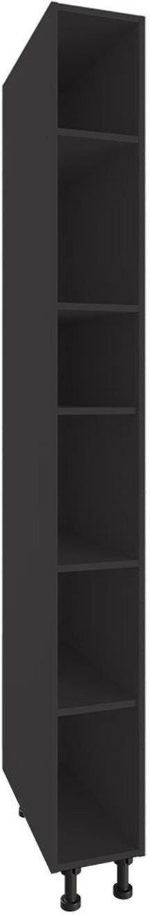 Korpus szafy wysokiej w kolorze grafitowym marki Lupus o wymiarach 202,2x56x20 cm.Dzięki funkcjonalności mebli Lupus zyskamy bardzo dużo miejsca do zagospodarowania, z powodzeniem pomieszczą przyprawy, dekoracje, naczynia czy artykuły spożywcze. Solidne wykonanie produktu gwarantuje jego dużą wytrzymałość i zapewnia wieloletnie użytkowanie. Klasyczny wygląd idealnie sprawdzi się w aranżacji każdej kuchni.Boki korpusu są łączone z dwóch elementów.Wykonany z laminowanej płyty wiórowej produkt należący do serii korpusów grafitowych.