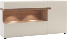 Linate TYP 42 - Komoda 3-drzwiowa Biała/Dąb Truflowy Komoda Linate TYP 42 łączy nowoczesny design z funkcjonalnością - bezuchwytowe fronty z MDF i wytrzymały korpus z płyty laminowanej. Przeszklona witryna i ciche domykanie to jej dodatkowe atuty. Wymiary: Szerokość (cm): 164 Wysokość (cm): 86,5 …