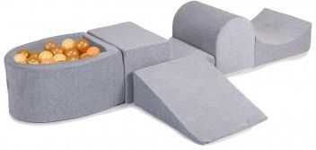 The MeowBaby Foam play set with ball pit and 100 balls Fun has a great dimension! Now you can create your own playground at home! Our recreational blocks not only boost children's imagination, but also teach creative thinking. The five-element set of modules can be used for playing, as well as for exercises, to create obstacle courses or spatial constructions. Particular elements may serve as poufes or seats. Antiallergic polyurethan foam which was used for the production of the set is characterised with small weight and high resistance to the deformations, due to which the product is safe for the child and exceptionally practical at the same time. Particular blocks are characterised with lightness therefore are easy to be placed in other places. All elements of the set have the removable cover, which facilitates washing in washing machine and maintaining the obstacle course in clean and tidy condition. The mini ball pit attached to the set is filled with colorful balls, which you can select from a wide range of colours by your preferences. The foam play set is a perfect part of equipment for the nursery, playing grounds, but, first of all, due to the cover extreemly pleasant to touch– also for children rooms. The simple and minimalistic desgin of this product makes it perfectly fit into the home space. The product is intended for the children aged 1-3, exceptionally for the use under care of an adult. Foam play set – specification: The set consists of 5 elements including the mini ball pit with the set of 100 balls Filling: polyurethan foam Case: textile soft in touch (77% cotton 23% polyester), with the zip-fastener, The case can be washed in the washing machine in the temperature of 30°C Dimensions: The width of each single module: 45 cm The height of the highest module: 35 cm The length of the whole construction: 197 cm + 60 cm chock set additionally in any place Dimensions of the mini ball pit: 57 cm x 45 cm x 30 cm