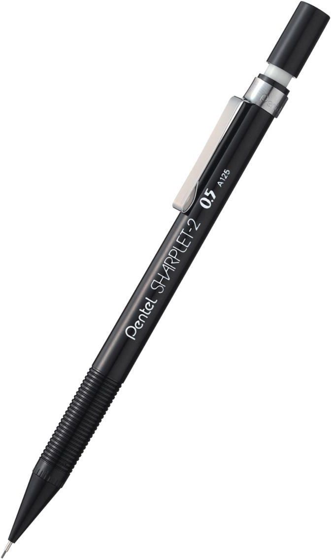 Ołówek automatyczny 0,5mm A125-A czarny PENTEL Do codziennego użytku w szkole, domu, biurze Lekka konstrukcja Regulowany klips i wbudowana gumka W komplecie 2 grafity HB Grubość grafitu: 0,5 mm Lekki w swojej konstrukcji ołówek automatyczny 0,5 mm. Posiada plastikowy mechanizm zaciskowy, metalowy, regulowany klips oraz wymienną gumkę Z2-1N. Ołówek A125 został skonstruowany w oparciu o profesjonalne i drogie ołówki kreślarskie. Klips można zdjąć całkowicie lub przesuwać w górę i w dół obudowy w zależności od potrzeb.