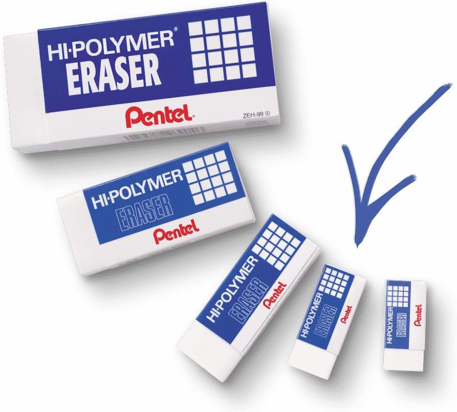 Bardzo popularna na całym świecie gumka ołówkowa Hi-Polymer. Wyjątkowo giętka i miękka, działa bez potrzeby mocnego dociskania do powierzchni. Nie narusza struktury papieru, pozostawia zeszyty, dokumenty oraz notatki w doskonałym stanie. Nie pęka, nie twardnieje, nie brudzi się. Pozostawia małą ilość ścinek. Nie zawiera szkodliwych substancji takich jak lateks i ftalany. Jest bezpieczna dla dzieci. Certyfikat fabryki: ISO9001:2008