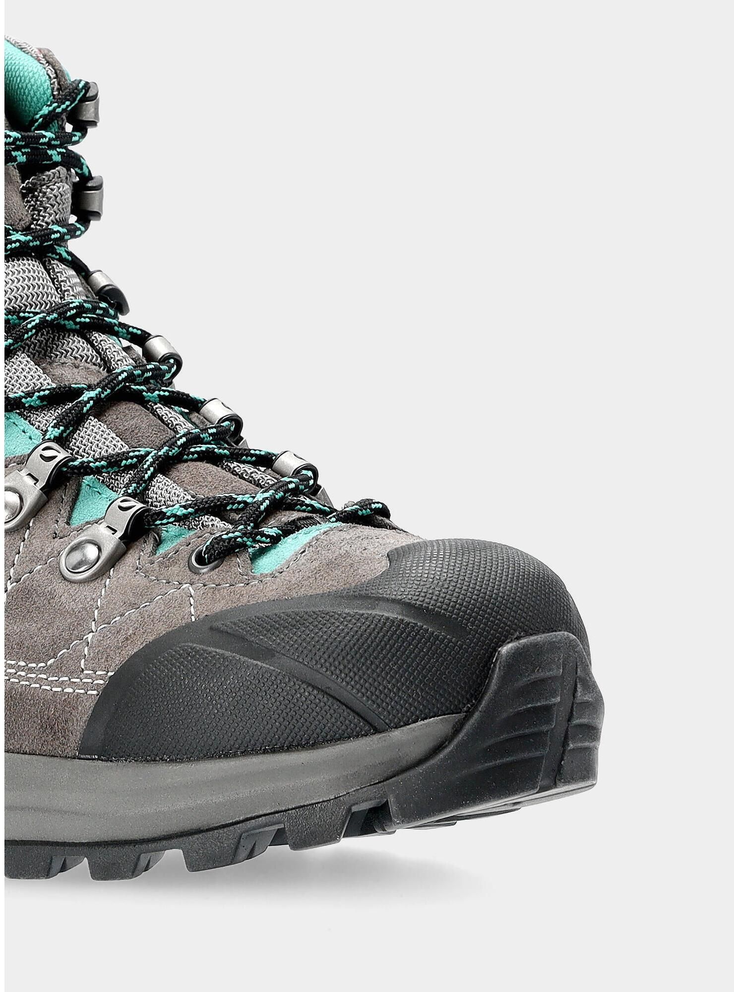 Buty trekkingowe damskie Scarpa Kailash Trek GTX powstały z myślą o każdej kobiecie wybierającej się na górską wędrówkę i poszukującej modelu za kostkę, który jednocześnie zapewni odpowiednią przyczepność do podłoża. W tym produkcie odpowiada za to podeszwa Vibram® Biometric. Pozwoli to bez przeszkód pokonywać kolejne kilometry na szlaku. Tym, co dodatkowo docenią wszystkie użytkowniczki w tych butach marki Scarpa jest zastosowana w nich membrana GORE-TEX® Performance Comfort. Dzięki niej model ma właściwości wodoodporne, co pozwoli wybrać się na szlak nawet podczas niesprzyjającej pogody i zachować suchą stopę w trakcie opadów. Buty trekkingowe damskie Scarpa Kailash Trek GTX to model stworzony z myślą o dłuższej wędrówce w górach. Cholewka tego produktu powstała z wysokiej jakości skóry zamszowej. Ten naturalny materiał wyróżnia się znaczną odpornością na uszkodzenia, dodatkowo oferując pewien stopień oddychalności. Poza tym skóra ma hydrofobowe wykończenie, a więc będzie odpychać krople wody. Podszewka w tych butach powstała z materiału tekstylnego. Wyściółka wykonana w taki sposób zapewnia szybkie odprowadzanie wilgoci i dostarcza stopom wysoki komfort nawet w wyższych temperaturach. Buty marki Scarpa mają również wstawki z Cordury®. Dzięki systemowi Flex Point w okolicy kostki, ten materiał oferuje wysoką wytrzymałość i szeroki zakres ruchu. Cholewka w tym modelu sięga za kostkę, dzięki czemu zapewnia jej stabilność. Buty trekkingowe damskie Scarpa Kailash Trek GTX mają z przodu otok wykonany z materiału TPU, który chroni czubek produktu przed uszkodzeniami w terenie. Dzięki temu zmniejszono ryzyko przetarcia materiału podczas kontaktu ze skałami. By maksymalnie ułatwić zakładanie i odpowiednie dopasowanie, produkt ma system sznurowania Speed Lacin. Wyróżnia się tym, że wykonano go z połączenia stali i tworzywa syntetycznego, pozwala odpowiednio wyregulować sznurówki na całej wysokości wiązania. Buty włoskiej marki Scarpa mają również właściwości wodoodporne, dzięki zastosowaniu w nich membrany rozpoznawalnej na całym świecie firmy GORE-TEX®. W tym produkcie wykorzystano rozwiązanie GORE-TEX® Performance Comfort Footwear dostarczające nie tylko ochronę przed wodą, ale również odpowiedni poziom oddychalności. Buty trekkingowe damskie Scarpa Kailash Trek GTX wyróżniają się wysokim poziomem amortyzacji wstrząsów na twardym podłożu. Odpowiada za to zastosowana w śródpodeszwie pianka PU. Ten materiał wyróżnia się również znaczną trwałością. Z kolei wykorzystana w butach Scarpa guma renomowanej firmy Vibram® dostarcza właściwą przyczepność podeszwy na zróżnicowanej nawierzchni. Rozwiązanie zastosowane w tym modelu to Vibram® Biometric sprawdzi się na górskim podłożu. Buty włoskiej marki Scarpa są dopasowane do kobiecej anatomii stopy. Buty Scarpa Kailash Trek GTX – najważniejsze cechy:Model dopasowany do kobiecej stopy;Cholewka wykonana ze skóry zamszowej;Zamsz zapewnia odpowiednią oddychalność;Naturalny materiał ma hydrofobowe wykończenie;Podszewka zapewnia szybkie odprowadzanie wilgoci i dostarcza stopom wysoki komfort;Wzmocniony przód cholewki z wytrzymałego materiału TPU zwiększa zabezpieczenie przed uszkodzeniami;System Flex Point z Cordury® oferują wysoką wytrzymałość i szeroki zakres ruchu kostki;Wodoodporna membrana GORE-TEX® Performance Comfort Footwear;Membrana dostarcza również właściwą oddychalnośći;Szybki system sznurowania Speed Lacin z dwuskładnikowymi częściami ze stali oraz tworzywa sztucznego dla lepszego dostosowania butów i zapewnienia maksimum komfortuŚródpodeszwa wykonana z materiału PU, który jest trwały i odpowiednio amortyzuje wstrząsy;Podeszwa Vibram® Biometric zapewnia dobrą przyczepność na zróżnicowanym terenie.