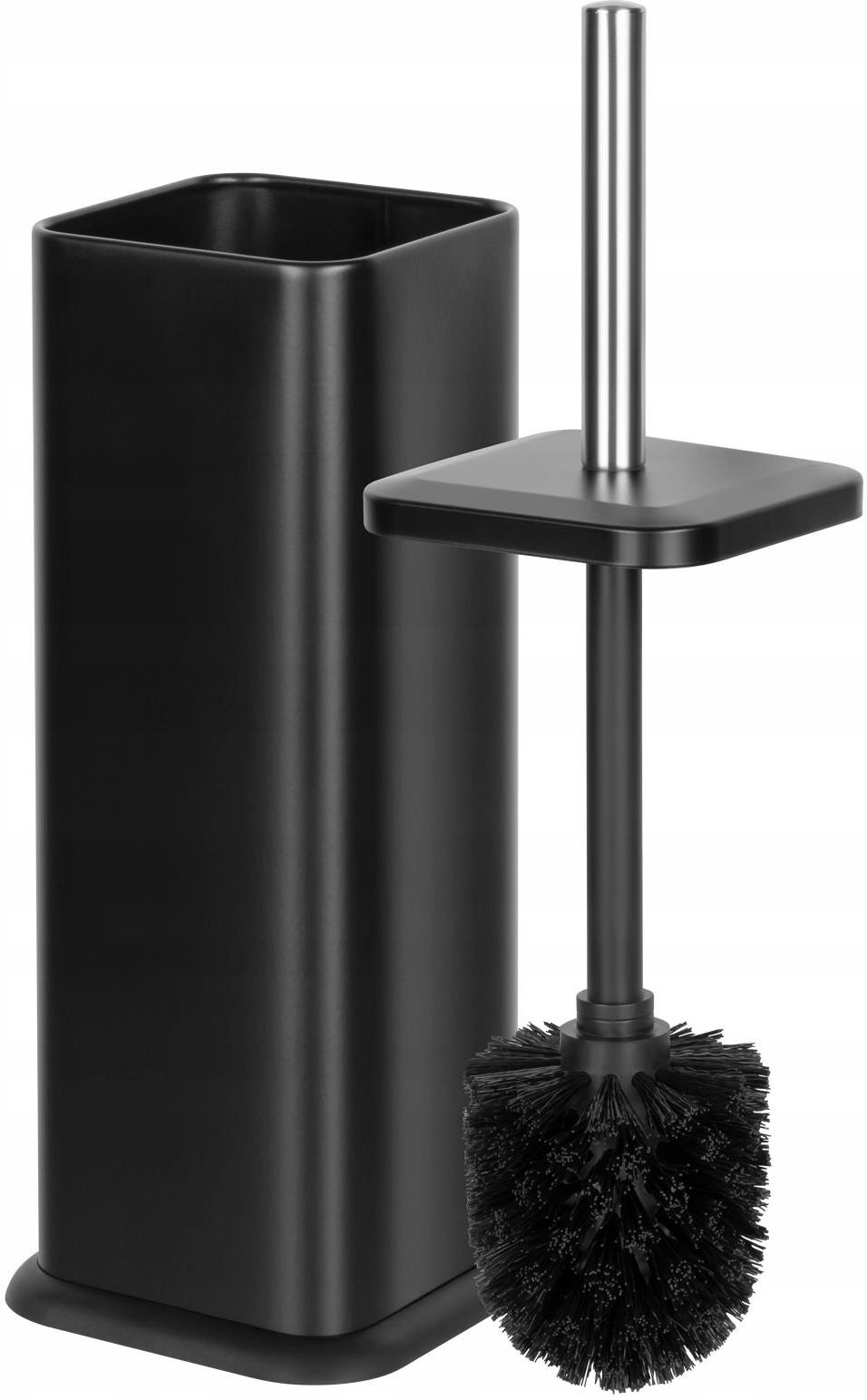 Wolnostojąca szczotka do WC Szczotka do WC to element wyposażenia każdej toalety, dlatego koniecznie wybierz model, który stylowo wkomponuje się w wystrój Twojej łazienki. Pojemnik na szczotkę do WC Teesa został wykonany ze stali nierdzewnej, która łączy w sobie praktyczność użytkowania oraz przyjemny dla oka wygląd. Jedną z jej podstawowych zalet jest odporność na wilgoć, a co za tym idzie mniejsze ryzyko powstawania korozji. Elegancja i higiena Zwróć także uwagę na budowę szczotki – zamykana forma nie tylko zapobiegnie wydostawaniu się nieprzyjemnych zapachów, ale także zwiększa higienę i w znacznym stopniu wpływa na estetykę. Co więcej, czarna, smukła obudowa sprawia, że akcesorium będzie idealnie współgrało z nowoczesnymi wnętrzami łazienek. Wygoda i prostota Co ważne, szczotka do toalet Teesa to model wolnostojący. Takie rozwiązanie z pewnością przypadnie do gustu osobom, które nie chcą wywiercać dodatkowych otworów w płytkach łazienkowych. Typ: wolnostojąca Materiał: Żelazo malowane proszkowo + PP Materiał końcówki: włosie syntetyczne Kolor: Czarny mat Wymiary: 11,2 x 11,2 x 37,5 cm Waga: 350 g Jednostka miary: szt.