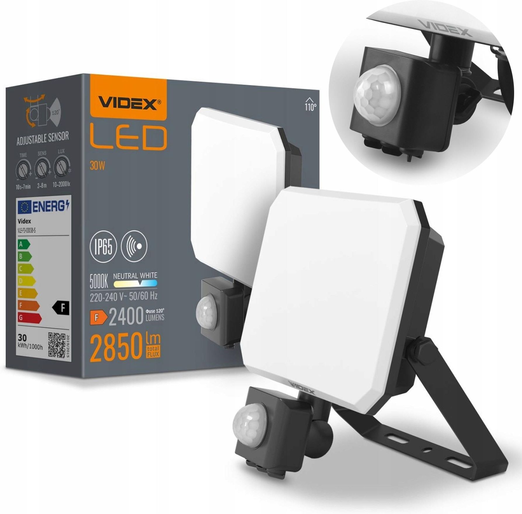 Naświetlacz halogen czujnik ruchu PIR 30W 5000K 2850lm IP65 FLOOD Videx ? Naświetlacz LED VIDEX 30 W z czujnikiem ruchu – 2850 lm | 5000 K | IP65 | IK07 Nowoczesny i solidny naświetlacz LED VIDEX o mocy 30 W to idealne rozwiązanie do zastosowań zewnętrznych – garaże, podjazdy, ogrody, fasady czy …