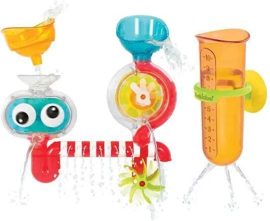 Edukacyjna zabawka do kąpieli przeznaczona dla dzieci od 12 miesiąca życia. Laboratorium wodne Yookidoo stworzone zostało dla małych odkrywców według metody STEM (science, technology, engineering, math). Pozwala na wielokierunkowy rozwój dziecka: maluch uczy się, poznaje proste technologie, konstruuje, a jednocześnie zdobywa wiedzę z dziedziny matematyki i fizyki. Wszystko to w formie radosnej zabawy!Zabawa i nauka podczas kąpieli z zabawnymi efektami – obrotowe gałki oczne, wirujący licznik, wielostrumieniowy zraszacz oraz silniczek wodny – tak wiele niesamowitych funkcji w jednej zabawce!Jak się bawić?YookidooZa pomocą przyssawek przymocuj zabawkę do wanny. Napełnij probówkę wodą – dzięki znajdującej się na niej podziałce nauczysz dziecko odmierzania różnych objętości. Teraz przelej zawartość probówki do lejka nad obrotowym licznikiem i obserwuj, jak licznik się obraca, a woda wypływa strumieniami ze zraszacza. To doskonała okazja do budowania myślenia przyczynowo-skutkowego. Wlej zawartość probówki do drugiego lejka i ponownie obserwuj co się dzieje. Napełniaj, mierz, przelewaj – wszystko to usprawnia motorykę i umiejętności manualne dziecka, a także wspiera rozwój koordynacji oko-ręka. Laboratorium wodne to zabawka edukacyjna, która pozwala także wytłumaczyć czym jest energia kinetyczna oraz jak i do czego można wykorzystywać energię wodną. Zachęcaj dziecko do eksplorowania i odkrywania, łącząc zabawę z nauką!Główne zalety:- edukacyjna zabawka do kąpieli mocowana do wanny za pomocą przyssawek,- pozwala generować dwie reakcje łańcuchowe z zaskakującymi efektami,- skonstruowana w oparciu o metodę STEM – wprowadza młodych naukowców w podstawowe pojęcia fizyki i matematyki wykorzystując siłę wody,- przezroczyste elementy pozwalają dokładnie obserwować, co dzieje się z wodą.Korzyści rozwojowe dla dziecka:- zabawka edukacyjna skonstruowana zgodnie z metodą STEM (science, technology, engineering, math) – pozwala na wielokierunkowy rozwój dziecka: maluch uczy się, poznaje proste technologie, eksperymentuje, a jednocześnie zdobywa wiedzę z dziedziny matematyki i fizyki,- to zabawka edukacyjna i kreatywna zarazem – pobudza dziecięcą wyobraźnię,- uczy myślenia przyczynowo-skutkowego,- wspomaga koordynację oko-ręka, zręczność manualną i zdolności motoryczne dziecka.W zestawie:- baza mocowana do wanny za pomocą przyssawek,- 2 akcesoria laboratoryjne: probówka i lejek. EAN: 7290107723039