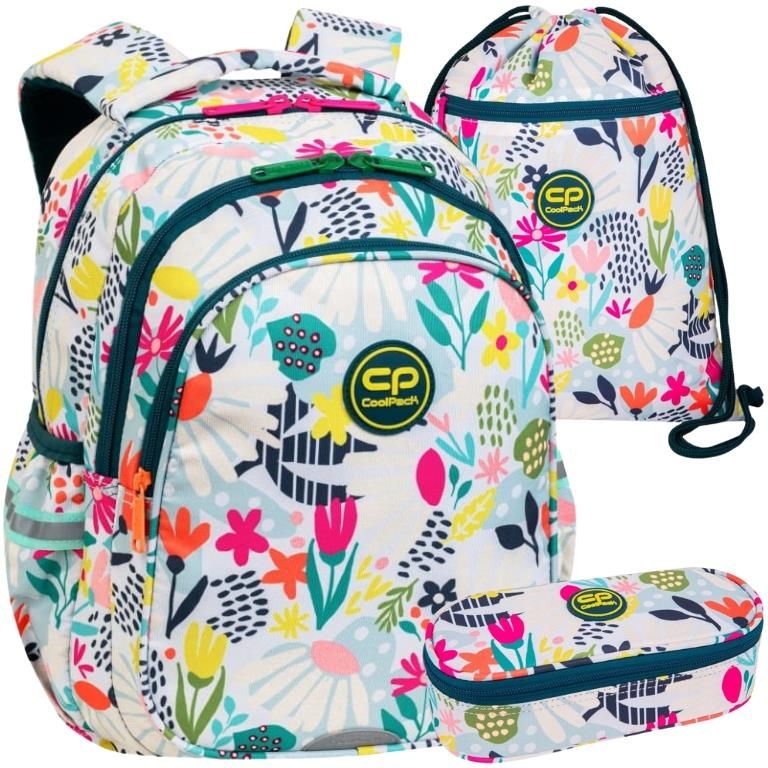 Coolpack Zestaw Szkolny Plecak Trzykomorowy Jerry + Piórnik Jednokomorowy Z Klapką Campus Saszetka Worek Na Buty Obuwie Vert Sunny Day Tarnowskie Góry