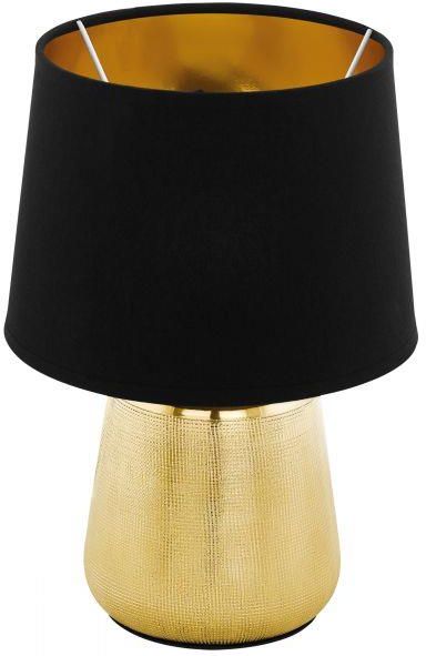Lampka nocna, stołowa serii Manalba . Podstawa wykonana z ceramiki, w kolorze złotym. Lampa posiada czarny materiałowy abażur z wewnętrzną powłoką w kolorze złotym. Źródło światła to jedna żarówka na gwint E14, o mocy maksymalnej 40W - nie stanowi zakresu dostawy. Włącznik znajduje się na przewodzie zasilającym. Klasa energetyczna: A++ do E Wysokość (cm): 30 Średnica (cm): 20 Rodzaj gwintu: E14 Moc żarówki (W): 40 Liczba żarówek (szt.): 1 Materiał: Ceramika Kolor: Czarny / Złoty IP: 20 Źródło światła w komplecie: NIE Możliwość zastosowania LED: TAK Producentem lampy jest uznana na świecie firma EGLO. Słyną oni z najwyższej jakości i nowatorskiego designu swoich produktów. Współpracują z najlepszymi projektantami i rzemieślnikami by dać Państwu, nie oświetlenie a małe działa sztuki.