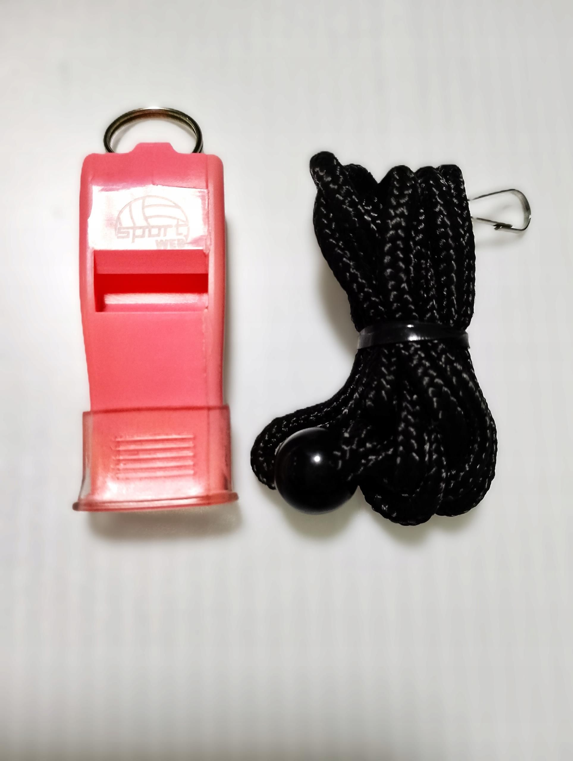 • Gwizdek z silikonowym ustnikiem i zawieszką na szyję, kolor różowy