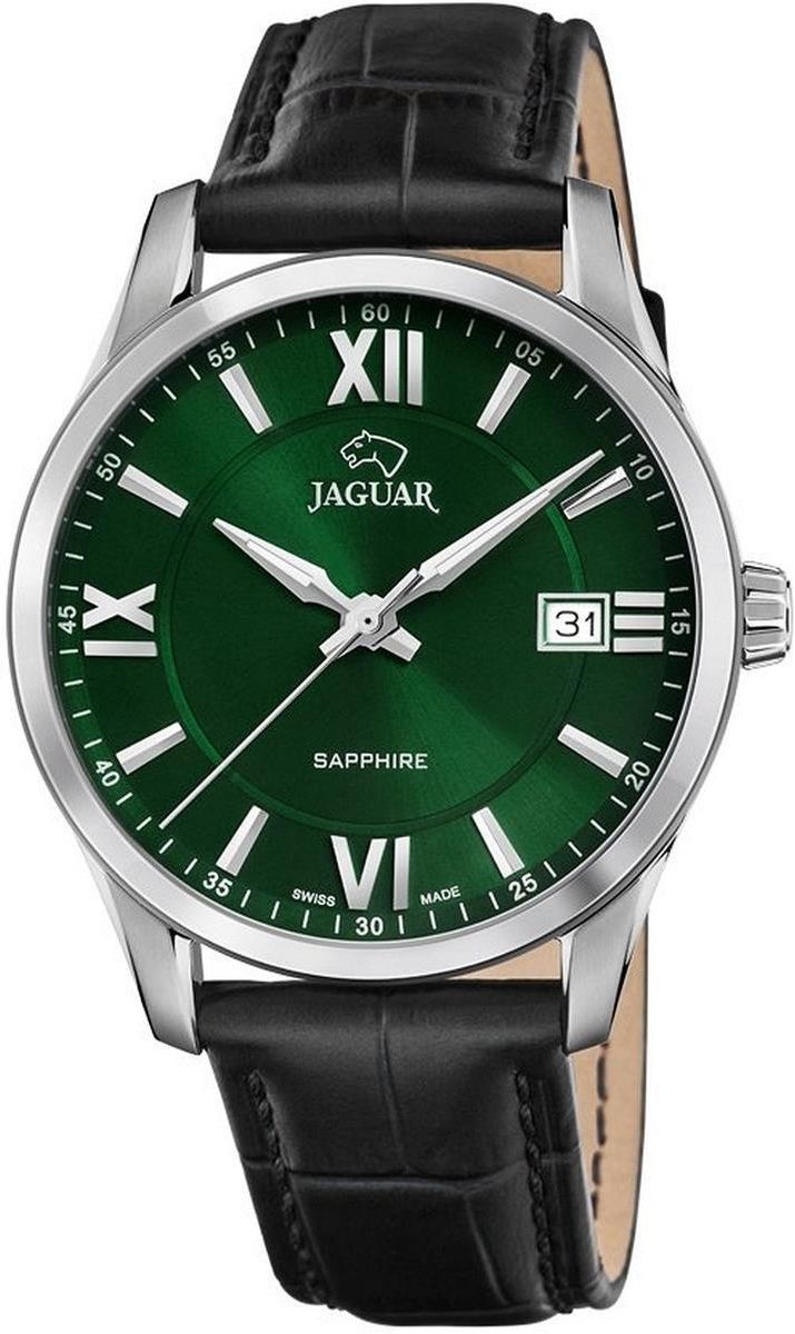 Jaguar J883-3 Zegarki marki Jaguar to synonim elegancji i doskonałego rzemiosła, które od lat przyciągają miłośników wyrafinowanych akcesoriów. Wśród ich oferty można znaleźć wiele modeli, które łączą w sobie funkcjonalność z estetyką. Model Jaguar J883-3 wyróżnia się nie tylko swoim klasycznym designem, ale również wysoką jakością wykonania, co czyni go idealnym wyborem dla mężczyzn ceniących sobie styl i niezawodność. Mechanizm i funkcjonalność Ten męski zegarek należy do kategorii analogowych, co oznacza, że jego klasyczne wskazówki nie tylko dodają mu elegancji, ale również zapewniają łatwe odczytywanie czasu. W przypadku modelu Jaguar J883-3, precyzyjny kwarcowy mechanizm gwarantuje niezawodność i dokładność, co jest niezwykle istotne dla każdego użytkownika. Materiały i design Koperta zegarka wykonana jest ze stali, co zapewnia jej trwałość oraz odporność na uszkodzenia. Srebrny kolor koperty harmonijnie współgra z zieloną tarczą, co sprawia, że model ten przyciąga wzrok i wyróżnia się wśród innych zegarków. Okrąły kształt koperty podkreśla jego klasyczny styl, a zastosowane szkło szafirowe charakteryzuje się wysoką odpornością na zarysowania, co dodatkowo wpływa na użytkowanie zegarka. Pasek i komfort noszenia Pasek zegarka Jaguar J883-3 w kolorze czarnym wykonany jest z materiałów wysokiej jakości, co zapewnia komfort noszenia oraz idealne dopasowanie do nadgarstka. Szerokość paska wynosząca 20 mm sprawia, że zegarek prezentuje się proporcjonalnie i elegancko, a jego styl i design wpisują się w klasyczne trendy, idealne na różne okazje. Wodoszczelność i zastosowanie Wodoszczelność to istotny aspekt, który przyciąga uwagę wielu użytkowników. Model Jaguar J883-3 zapewnia wodoszczelność na poziomie 100 m, co oznacza, że można go nosić podczas pływania oraz codziennych aktywności bez obaw o przypadkowe zamoczenie. Dodatkowo, zegarek objęty jest gwarancją 2 lata, co podkreśla jego jakość i niezawodność. Wybierając zegarek, warto zwrócić uwagę na jego kluczowe cechy: Rodzaj: męski, analogowy, Mechanizm: kwarcowy, Materiał koperty: stal nierdzewna, Kolor koperty: srebrny, Kolor paska: czarny, Szerokość koperty: 40 mm, Szerokość paska: 20 mm, Szkło: szafirowe, Wodoszczelność: 100 m. Wymiary zegarka, w tym średnica koperty wynosząca 40 mm, zapewniają komfort noszenia oraz estetyczny wygląd na nadgarstku. Model ten doskonale łączy w sobie elegancję i funkcjonalność, co czyni go uniwersalnym wyborem dla każdego mężczyzny. Jaguar J883-3 to zegarek, który zachwyca minimalistycznym designem i wysoką jakością wykonania. Dzięki swoim cechom i eleganckiemu wyglądowi, idealnie wpisuje się w potrzeby współczesnych mężczyzn poszukujących stylowego akcesorium, które podkreśli ich indywidualność. Ten model z pewnością stanie się niezastąpionym towarzyszem na co dzień oraz w wyjątkowych chwilach.