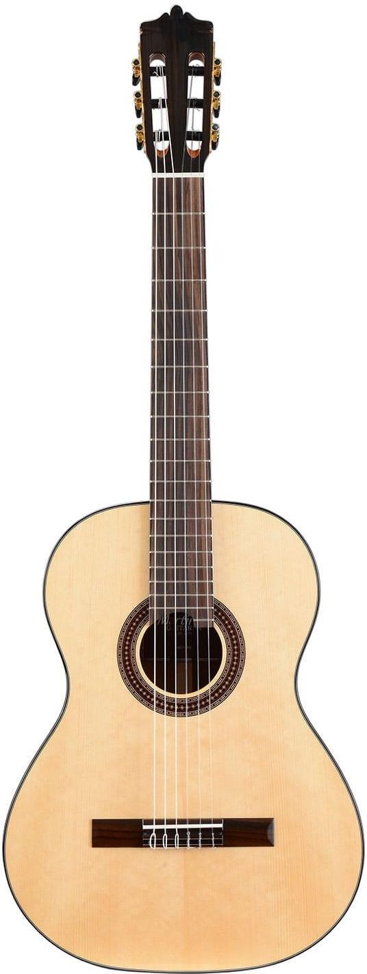 Model Martinez MC-48S to wysokiej jakości instrument idealny dla gitarzysty w początkowej fazie edukacji. Top: lity Świerk Boki i tył: Mahoń Podstrunnica: Palisander Hiszpański typ łączenia gryfu z korpusem (Spanish Joint) Gryf: Mahoń Szerokość przy siodełku: 52mm Skala: 4/4 (650mm) Klucze: złote Mostek: Palisander Lakier: połysk Struny: Savarez Próba brzmieniowa instrumentu w wykonaniu Andrzeja Grygiera: Gwarancja: 24 miesiące