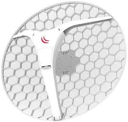 Urządzenie klienckie MikroTik LHG XL 4Pack HP5 Antena siatkowa LHG XL HP5 MikroTik LHG XL HP5 bardzo ciekawe rozwiązanie inżynierskie, które zawiera antenę siatkową ze zintegrowanym punktem dostępowym. Antena LHG XL HP5 ma dwukrotnie większą moc wyjściową niż LHG 5, wynoszącą do 630 mW, i są zaprojektowane tak, aby zapewnić do 60% większy zasięg. Charakterystyka techniczna LHG XL HP5 posiada dużą antenę o średnicy 550 mm i zysku 27dBi. W zależności od częstotliwości pracy może się to wahać w granicach +/- 0,5 dBi. Najlepszą wydajność uzyskuje się przy częstotliwościach pomiędzy 5,7 a 5,8 GHz. Kształt kołowy jest optymalny dla anten dwupolaryzacyjnych, ponieważ zapewnia taki sam zysk w polaryzacji poziomej i pionowej. Antena LHG XL HP5 jest w stanie zapewnić łączność punkt-punkt na odległość do 40 km. Wyjątkowe wzornictwo Za siatką znajduje się struktura nośna w kształcie plastra miodu, wykonana ze specjalnego tworzywa sztucznego i mająca zapewnić ogólną sztywność konstrukcji reflektora. Sam nadajnik znajduje się na górze anteny i posiada 3 punkty mocowania do reflektora, co zapewnia dodatkową sztywność całej konstrukcji. Taka konstrukcja zapewnia kąt kierunkowości 6,4°. Waga kompletnej konstrukcji nie przekracza 0,945 kg. Doskonała konstrukcja MikroTik LHG XL HP5 stosuje reflektor z siatki metalowej. Reflektor ten charakteryzuje się niską masą i dobrą odpornością na silne wiatry, co pozwala na tworzenie anten o dużych rozmiarach i dużym zysku , bez uszczerbku dla stabilności konstrukcji. Długość fali jest bezpośrednio związana z częstotliwością pracy, dlatego rozstaw siatek został zaprojektowany tak, aby skutecznie odbijać fale radiowe przy zachowaniu lekkiej konstrukcji. Połączenie punkt-punkt Wysokie wzmocnienie i wąska kierunkowość sprawiają, że LHG jest doskonałym wyborem do budowy podstawowych, bezprzewodowych mostów punkt-punkt o dużym zasięgu. Ze względu na cechy konstrukcyjne, most złożony z dwóch anten LHG XL HP5 oferuje większą stabilność i szybkość na długich dystansach. Cechy zabiezpieczeń: Odporny na wstrząsy, Wytrzymały na wibracje Kolor produktu: Biały Maksymalne zużycie mocy: 7