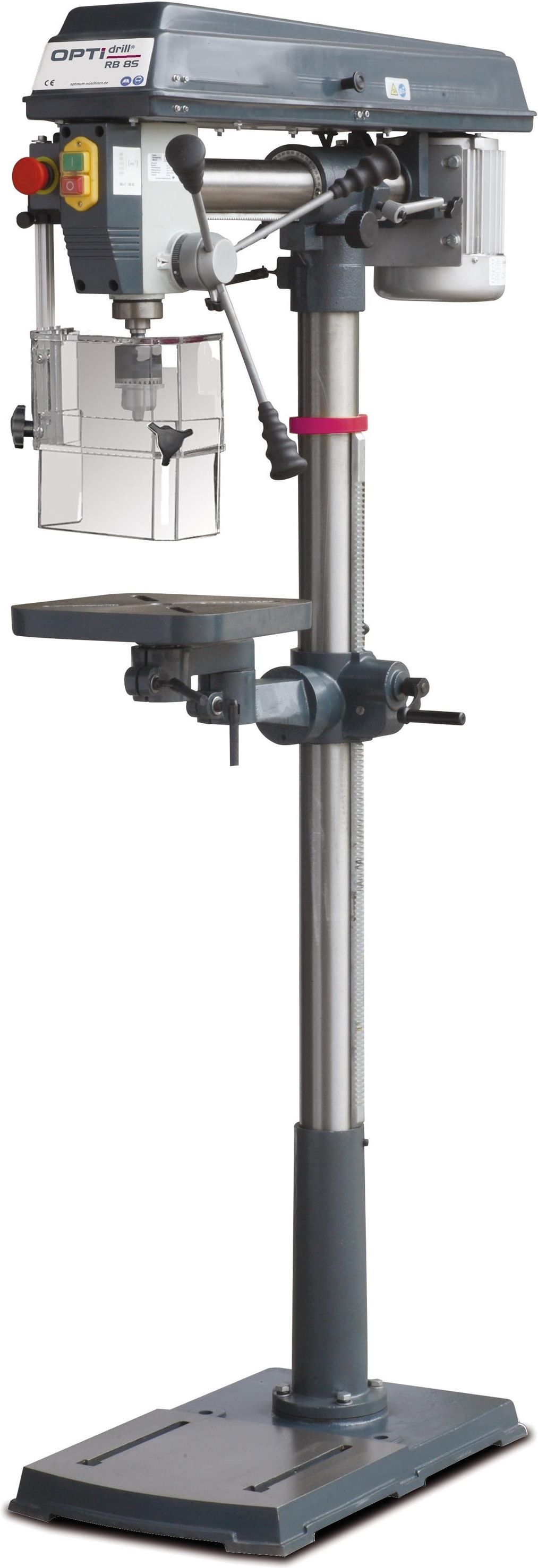 WIERTARKA KOLUMNOWA RB 8S OPTIMUM 3009181 Najlepsze przenoszenie mocy przez aluminiowe koła pasowe w połączeniu z zębatym paskiem klinowym jakości GATES Gwarantowana koncentryczność wrzeciona wiertarki mierzona lepsza niż 0,03 mm w tulei wrzeciona wiertarskiego Zabezpieczenie uchwytu wiertarskiego …