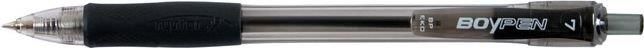 Ekonomiczna wersja długopisu automatycznego BoyPen. Zaopatrzony w efektywną końcówką piszącą, która zapewnia dużą lekkość i swobodę pisania. Korpus z wygodną, gumową strefę chwytu, dzięki której długopis pewnie leży w dłoni i nie wyślizguje się. Tusz o właściwościach wodoodpornych i nieblaknących pozostawia wyraźne i klarowne kontury. Transparentna obudowa daje możliwość kontrolowania poziomu wykorzystania tuszu. Praktyczna skuwka z klipsem i uchwytem efektownie barwionym w kolorze tuszu.