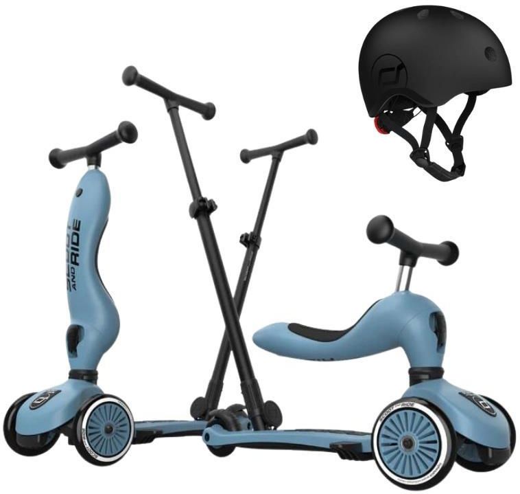 Scootandride Highwaykick 1 Push And Go 2W1 Jeździk I Hulajnoga Z Rączką Do Prowadzenia + Kask Xxs-S 1-5 Lat Steel Tarnowskie Góry
