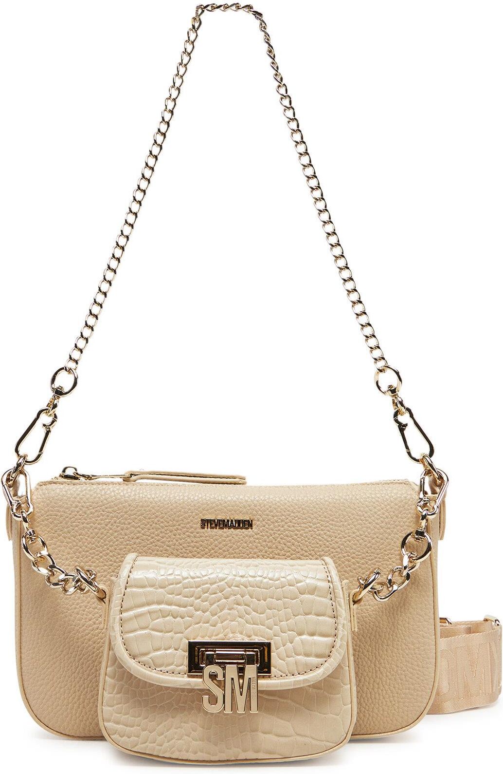 Torebka Steve Madden to synonim stylu i funkcjonalności w modnym wydaniu. Wykonana z imitacji skóry, łączy elegancki design z trwałością. Jej mały rozmiar sprawia, że jest idealna na wieczorne wyjścia czy codzienne spotkania, a twarda konstrukcja gwarantuje zachowanie perfekcyjnego kształtu. Dopinany łańcuszek dodaje jej charakteru i pozwala na różnorodne stylizacje, a dopinana saszetka zwiększa jej praktyczność, umożliwiając przechowywanie drobnych przedmiotów. To doskonały wybór dla kobiet, które cenią modne dodatki z nutą oryginalności!