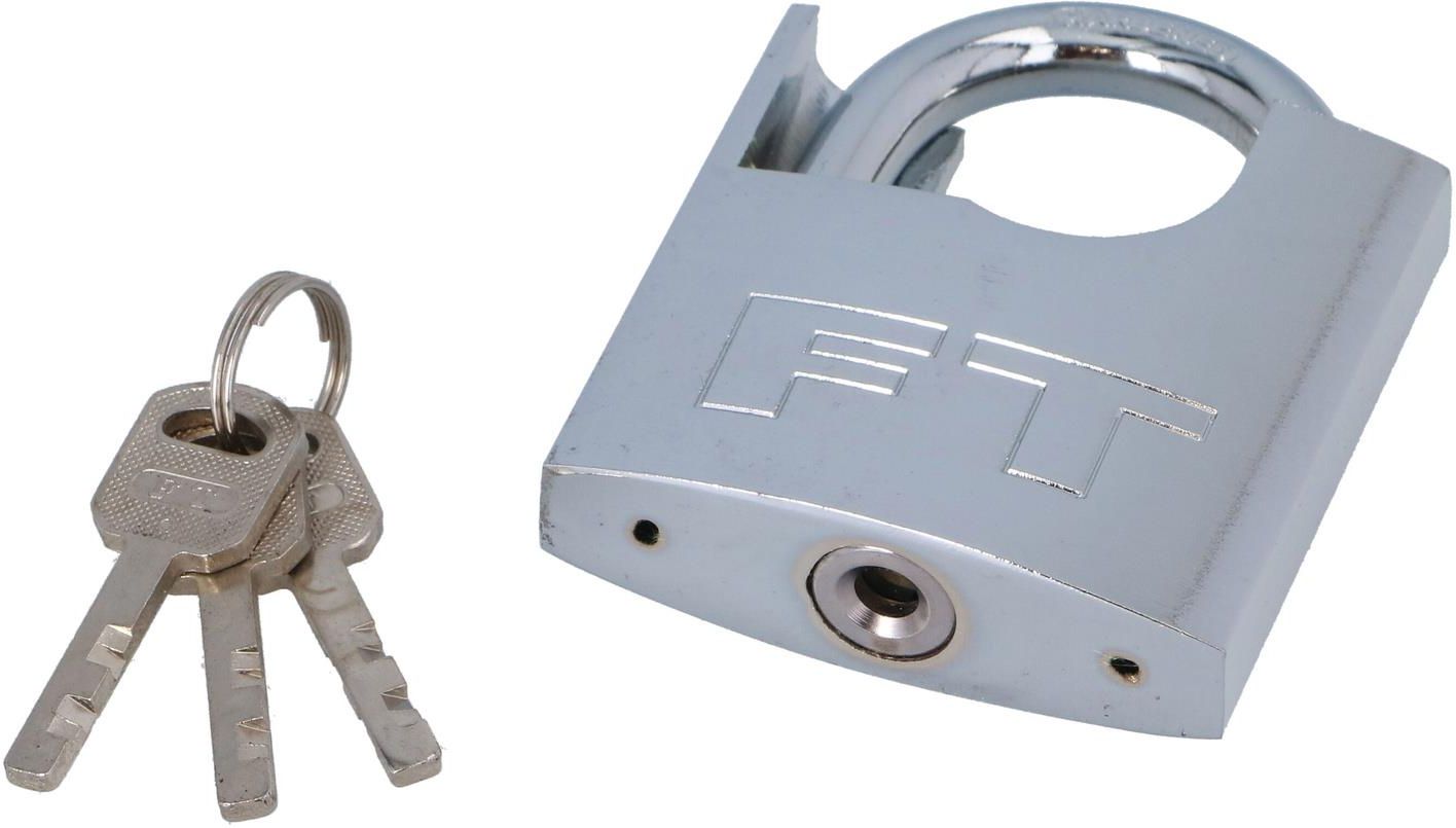 Kłódka posiada specjalną budowę, która ogranicza możliwość przecięcia pałąka Dostarczana z kompletem trzech kluczy Wykonana z wysokiej jakości materiałów