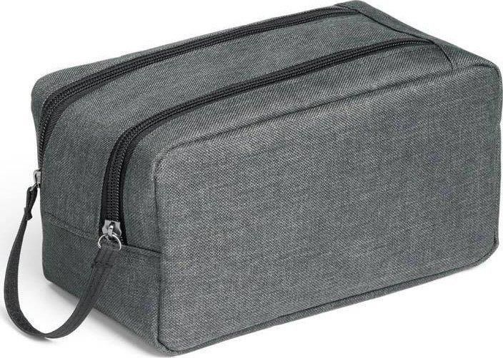Kosmetyczka, szary Kolory: Szary Wymiary: 220 x 110 x 110 mm Materiał: Bawełna i poliester Stan: Nowy Kosmetyczka wykonana z 600D o wysokiej gęstości, z uchwytem, podwójnym zamkiem i wyściółką. wymiary: 220 x 110 x 110 mm