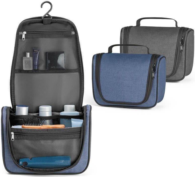 Kosmetyczka wykonana z 600D o wysokiej gęstości. Główna komora zapinana na dwukierunkowy zamek błyskawiczny i podszewka z 210D. Zawiera kilka wewnętrznych kieszeni i haczyk na górze do zawieszenia. 230 x 180 x 105 mm