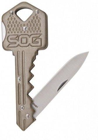 Najlepszy nóż, to taki, który możemy mieć zawsze przy sobie - a takim jest właśnie składany nóż z obudową w kształcie klucza od domu, wyprodukowany przez firmę Sog. Jest niewielkich wymiarów, niezwykle lekki, a w dodatku nie będzie rzucał się w oczy jeśli dopniemy go do pęka kluczy, które nosimy zawsze przy sobie. Posiada obudowę ze stali nierdzewnej w kolorze mosiądzu, a sam nóż o długości prawie 4 centymetrów posiada blokadę lockback, która chroni przed przypadkowym złożeniem się ostrza.