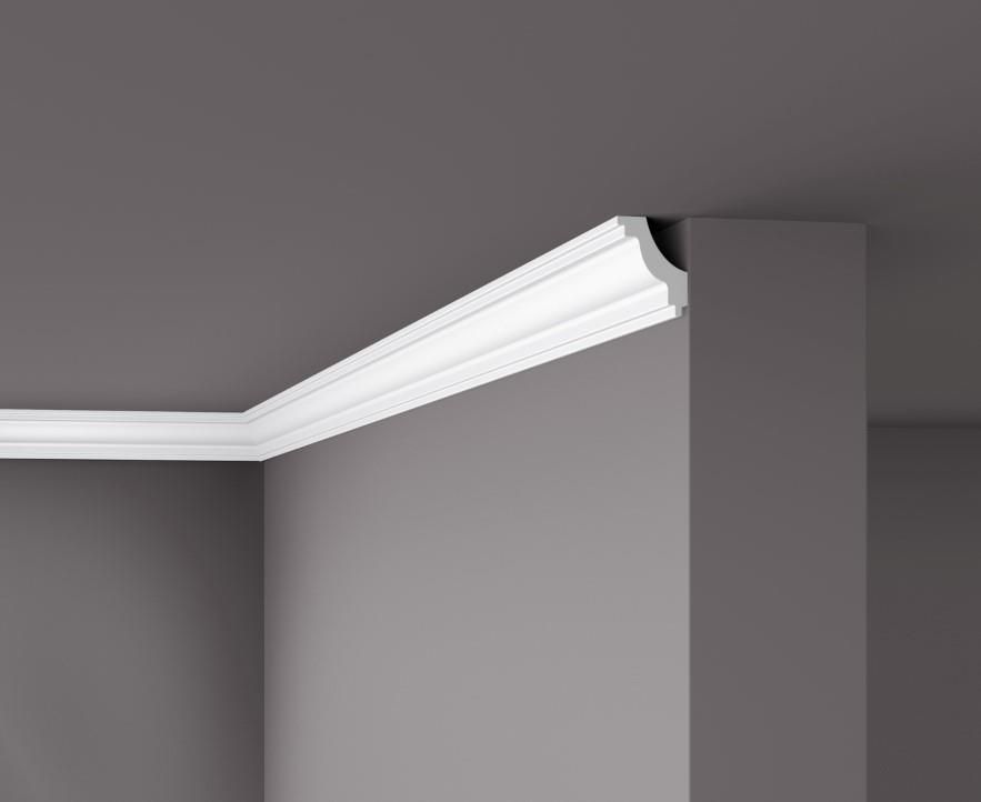 Listwa przysufitowa kolekcja Nomastyl model J, Bardzo klasyczna, precyzyjnie dopracowana kombinacja fryzów oraz wypukłego kształtu. Listwa gładka, prosta z mocno zaostrzoną krawędzią pozwoli na podkreślenie wybranej płaszczyzny. Dobrze prezentuje się w połączeniu z profilami dekoracyjnymi PX116, PX117, rozetą R07 oraz listwami przypodłogowymi SX137. Listwa może stanowić podstawowe wykończenia w salonie, biurze lub kuchni jak również może stanowić listwę jako bazę do oświetlenia sufitu. Produkt posiada wszelkie atesty i certyfikaty higieniczne, bezpieczeństwa. Warto podkreślić, że listwy gzymsowe stanowią element który poza podkreśleniem ściany pozwalają doskonale na zamaskowanie ewentualnych krzywizn czy pęknięć na styku ścian. Podkreślają one też znacząco płaszczyzny i powodują, że ściana przestaje być płaska, zimna po prostu nudna. Dodatkowo proponowana listwa wyróżnia się oryginalnym wzornictwem oraz jakością materiałów na tle dostępnych innych produktów stosowanych jako listwy sufitowe. Cecha produktu: Gładka styropianowa listwa, zabezpieczona przed żółknięciem w trakcie użytkowania poprzez zastosowanie niewidocznej folii syntetycznej na warstwie listwy. Listwa o gładkiej strukturze, koloru białego została pokryta fabrycznie farbą podkładową. Lekka, łatwa w montażu. Produkt wolny od freonu i nietoksyczny. Na warstwę podkładową listew sufitowych NMC Nomastyl można nanosić bezpośrednio większość farb, również tych, zawierających rozpuszczalniki. Polecamy farby lateksowe lub akrylowe do eksluzywnego wykończenia listew. Proponowana listwa wyróżnia się designem oraz jakością materiałów na tle dostępnych innych produktów stosowanych jako listwy sufitowe styropianowe. Wskazany detal podkreśla upiększoną płaszczyznę. Dzięki klasycznej formie i wyraźnie dopracowanemu designowi doskonale współgra z innymi elementami dekoracyjnymi uzupełniając sie nawzajem. Uzyskamy zatem nie banalne połączenie stosując jednocześnie listwę sufitową oraz gładkie proste rozety R07, R08 lub R40 lub listwy przypodłogowe. Listwa o długości 2 metrów.