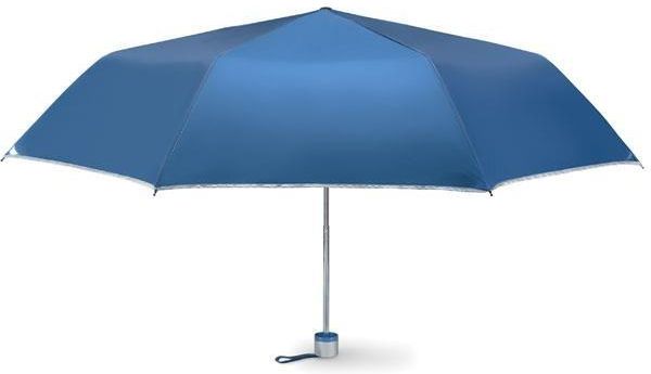 Parasolka składana ręcznie na 3, ze srebrną podszewką wewnątrz. Rozmiar: 21 cali, trzon i końcówki ocynkowane, czarne lakierowane żebra. Srebrna, plastikowa rączka z kolorystycznie dobranym paskiem na rękę. Dobrany kolorystycznie pokrowiec ze srebrną wstawką. Materiał: poliester 190T.