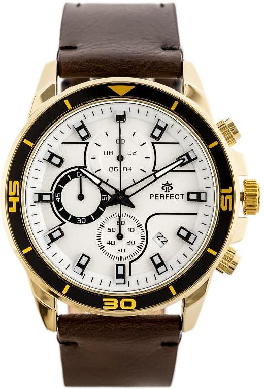 ✅ZEGAREK MĘSKI PERFECT CH02L - CHRONOGRAF (zp351b) + BOX ✅ ✅ ✅ OPIS: Zegarki Perfect to czasomierze damskie, męskie oraz dziecięce, projektowane w Polsce od 1994r. Dzięki swojej tradycji jest to jedna z najbardziej rozpoznawalnych marek w naszym kraju. Kolekcje tego producenta cechują się różnorodnością stylu i zastosowania. W ofercie znajdują się zegarki klasyczne, sportowe oraz takie, które pasują praktycznie na każdą okazję i do każdej stylizacji. Większość cechuje niezawodny oraz bardzo dokładny mechanizm kwarcowy Miyota produkcji japońskiej oraz wysoka jakość wykonania co w połączeniu ze stosunkowo niską ceną czyni z produktów tej marki bardzo atrakcyjną propozycję. SPECYFIKACJA: Mechanizm: kwarcowy Made in Japan. Przeciwalergiczna powłoka IPS FUNKCJE: datownik - dzień miesiąca chronograf WYMIARY: koperta: 46 x 52 x 11 mm tarcza: 36 mm szerokość paska: 24/22 mm minimalny/maksymalny obwód: ok. 15,5 - 20,5cm KOLORYSTYKA: tarcza w kolorze białym indeks w kolorze czarnym pasek w kolorze brązowym koperta w kolorze złotym ring w kolorze czarnym W SKŁAD ZESTAWU WCHODZI: Oryginalny zegarek Perfect Oryginalne pudełko Perfect Karta gwarancyjna ✅18370 ✅ ✅ Kolor paska/bransolety: Złoty, Brązowy Kolor tarczy: Biały Kształt tarczy: Okrągły Mechanizm: Kwarcowy Pasek/bransoleta: Skórzany Rodzaj tarczy: Wskazówkowa Klasa wodoszczelności: WR30 Szkło: Mineralne Gotowy do wystawienia: Tak Funkcje: Datownik, Chronograf, Mineralne szkło Płeć: Męskie Długość towaru w centymetrach: 25 Szerokość towaru w centymetrach: 8 Wysokość towaru w centymetrach: 5 Waga gabarytowa w gramach: 166.67 Kolor koperty: Złoty Szerokość koperty (mm): 46 Grubość koperty (mm): 11 Szerokość paska/bransolety (mm): 24 Obwód maksymalny (mm): 205 pf box: Tak Konfigurator usługi grawerowania: true Kod producenta: 5903981719662 ✅ZEGAREK MĘSKI PERFECT CH02L - CHRONOGRAF (zp351b) + BOX ✅
