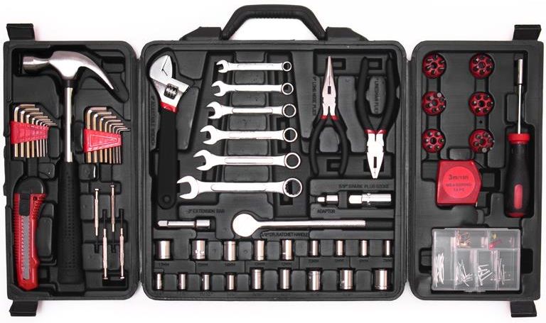Markowy Zestaw Narzędzi i Kluczy (160-elementów!!) Stahlbär + + Walizeczka z Tworzywa Sztucznego. Niezbędna rzecz w każdym domu i warsztacie!! Doskonale nadaje się także na prezent!! Zestaw wysokiej jakości!! Wyprodukowany przez niemiecką firmę Stahlbär. W zestawie specjalna walizka (z rączką) do przechowywania i bezpiecznego transportu kluczy. Zestaw Zawiera: 1 x młotek 12 oz, 1 x nóż typu snap-off, 4 x śrubokręt precyzyjny, 1 x klucz nastawny 8", 16 x klucz do śrub z 6-kątnym gniazdem, 6 x klucz płaski, 1 x szczypce półokrągłe 6", 1 x kombinerki 6", 1 x adapter, 1 x gniazdo, 1 x przedłużka, 1 x uchwyt klucza nasadkowego, Klucze: 18 x 3/8" nasadki DR, 1 x bit, 1 x taśma miernicza (3 metry), 1 x końcówka do bitów, 69 x łącznik. UWAGA!! W ofercie posiadamy również inne zestawy narzędzi do wyboru. Dane Techniczne: - Wymiary w walizce (dług. x szer. x grub.): 368 x 350 x 80mm, - Waga całości: 4140g., - Certyfikaty: CE, - Producent: Stahlbär, Niemcy. W Cenie: › 160-elementowy zestaw narzędzi, › Walizka ochronna z tworzywa sztucznego, › Gwarancja. Wysyłka w 24h! Płatność przy odbiorzeMożliwość wcześniejszej wpłaty Przy zakupie kilku produktów naraz - płatny tylko jeden koszt przesyłki! Możliwość wysyłki pocztą lub kurierem Realizujemy również przesyłki za granicę oraz na "Poste Restante" Na życzenie wystawiamy faktury VAT Wszystkie ceny zawierają podatek VAT 23%