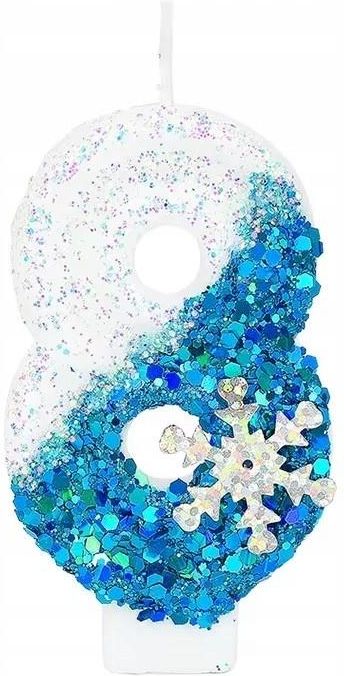Świeczka urodzinowa w kształcie cyfry z brokatem i śnieżynką Dodaj odrobinę zimowej magii do urodzinowej uroczystości! Nasza świeczka w kształcie cyfry to wyjątkowa dekoracja, która oczaruje każdego solenizanta i gości. Idealna na pierwsze, dziesiąte, dwudzieste... lub dowolne urodziny – wystarczy połączyć z inną cyfrą! Cechy produktu: Kształt: Cyfra 8 Kolor: Biały z brokatem, ozdobiona niebieskimi i turkusowymi cekinami Motyw: Śnieżynka – idealna na zimowe urodziny! Wysokość: ok. 7 cm Materiał: Wysokiej jakości wosk z brokatowym wykończeniem Posiada stabilną podstawkę do umieszczenia na torcie Idealna na Zimowe urodziny Tematyczne przyjęcia "Frozen", "Kraina Lodu", itp. Sesje zdjęciowe tortów Zrób niezapomniane wrażenie i podaruj magię świętowania z naszą wyjątkową świeczką!