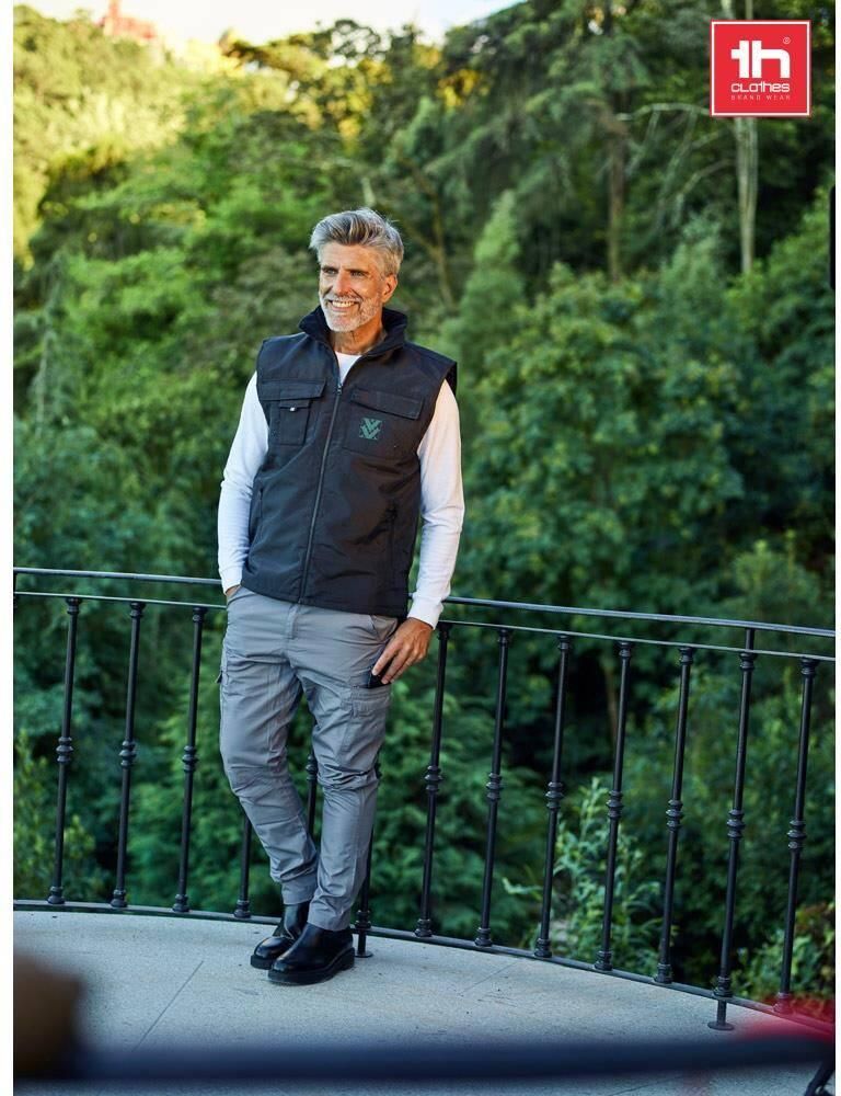 Wyściełana męska kamizelka robocza ze 100% poliestru oxford z powłoką akrylową (170 g/m²), podszewka w 100% z poliestru z tafty (65 g/m²). Kołnierz podszyty polarem i elastyczne boki dla lepszego dopasowania. Zawiera 6 kieszeni: 5 przednich, w tym 2 z wewnętrznym zamkiem, 1 na telefon komórkowy i 1 wewnętrzną. Zapięcie na zamek z tyłu dla łatwej personalizacji. Rozmiary: S, M, L, XL, XXL, 3XL