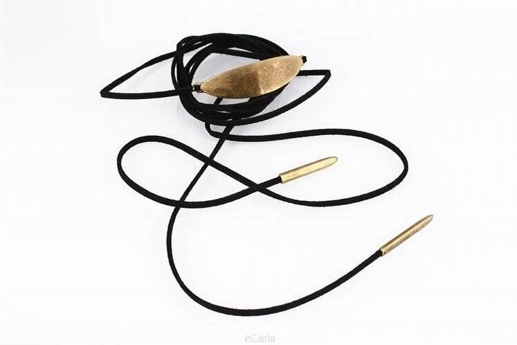 HIT SEZONU! Naszyjnik choker z ozdobami. Wykonany z rzemyka - bardzo wygodny w noszeniu. Klasyczne i proste wzornictwo naszyjnika idealnie podkreśli naturalne piękno i klasę kobiety.Świetnie pasuje do eleganckich, jak również do codziennych stylizacji. Naszyjnik prezentuje się rewelacyjnie!Naszyjnik wykonany jest ze stopów metali nieszlachetnych.Nie zawiera niklu ani chromu. Sprzedawany na eleganckich plakietkach. Wymiary:- długość ok. 115cm