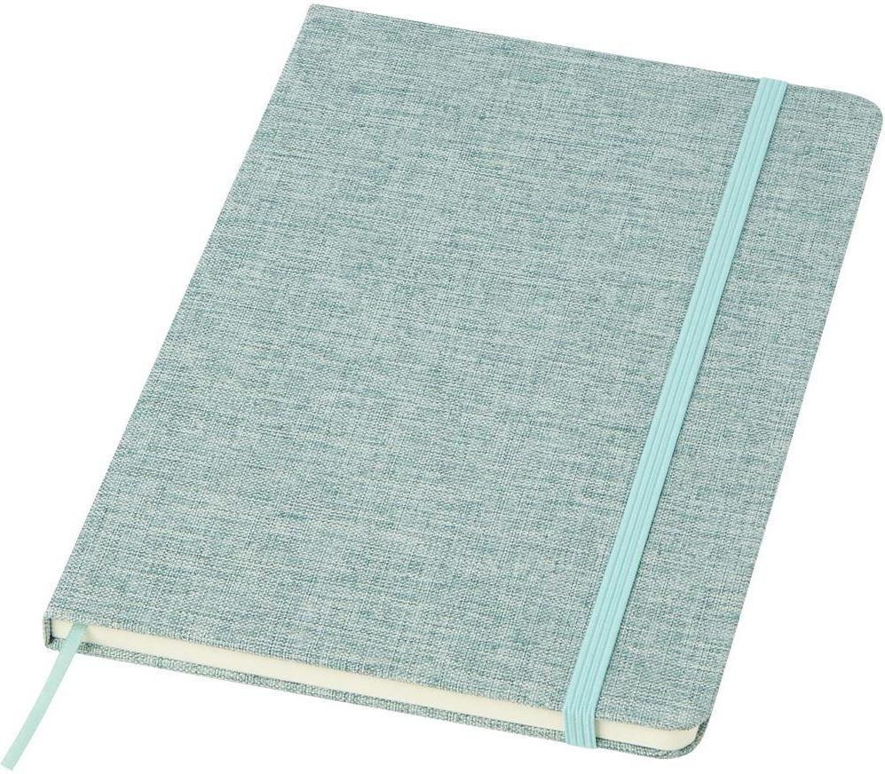 Notatnik A5 w twardej oprawie wykonany z bawełny pochodzącej z recyklingu, z 80 kartkami w linie z papieru o gramaturze papieru 70 g/m². Notatnik posiada elastyczne zamknięcie, wstążkę i zaokrąglone rogi.