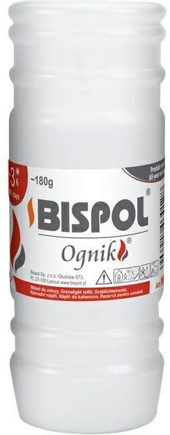 Wkład do zniczy Bispol Ognik WP-3 to parafinowy wkład o czasie palenia wynoszącym około 3 dni. Jest bezzapachowy, nie kopci i nie pozostawia czarnych smug na szkle znicza.