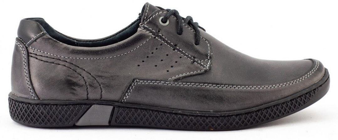 Buty męskie skórzane sznurowane casual POLSKIE 911 szare Skórzane buty męskie to jednocześnie wygoda i komfort noszenia. Buty wykonane są w całości (w środku i na zewnątrz) ze skóry naturalnej. Są one wykonywane w Polsce, przez rodzime i uznane firmy. Dodatkowym atutem jest ponadczasowy krój, który pozwala na łączenie tych skórzanych butów męskich z garderobą w stylu sportowej elegancji. Buty są sznurowane, przez co ich ubieranie jest bardzo łatwe. Skórzane buty męskie wyróżniają się kontrastowymi przeszyciami, dzięki którym wyglądają one ciekawiej. Buty dostępne są w kilku wersjach kolorystycznych. Wykonane ze skóry buty męskie idealnie dopasowują się do stopy, gwarantując komfort noszenia. Półbuty są świetne na sezon wiosenny i jesienny. Można je zestawiać z jeansami, ale także z innymi spodniami. Pasują do pracy, ale także na popołudniowe wyjścia. Gatunek: I Kolor: Szary Materiał wewnętrzny: Skóra naturalna Materiał: Skóra naturalna Podeszwa: Wysokogatunkowe tworzywo Sposób wykonania: Szyte, Klejone Typ: Casual Tęgość: G Zapięcie: Sznurowane Konserwacja: Pasty do skór licowych, Tłuszcze do konserwacji typu Mink Oil Wysokość towaru w centymetrach: 15 Długość towaru w centymetrach: 25 Szerokość towaru w centymetrach: 20 Tabela rozmiarów: Rozmiar 40 - wkładka: 26,5 cm Rozmiar 41 - wkładka: 27 cm Rozmiar 42 - wkładka: 27,5 cm Rozmiar 43 - wkładka: 28,5 cm Rozmiar 44 - wkładka: 29 cm Rozmiar 45 - wkładka: 29,5 cm
